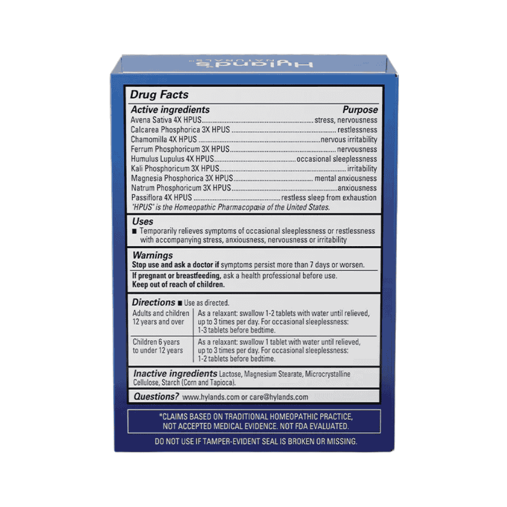 Helps temporarily relieve the symptoms of occasional sleeplessness and restlessness with accompanying stress, anxiousness, nervousness and irritability.