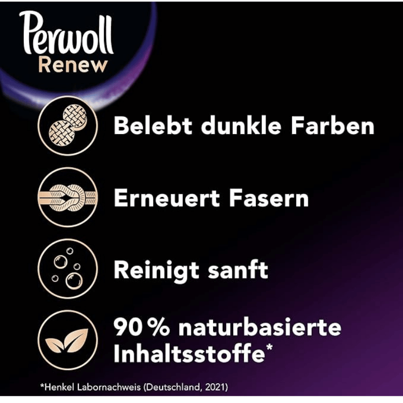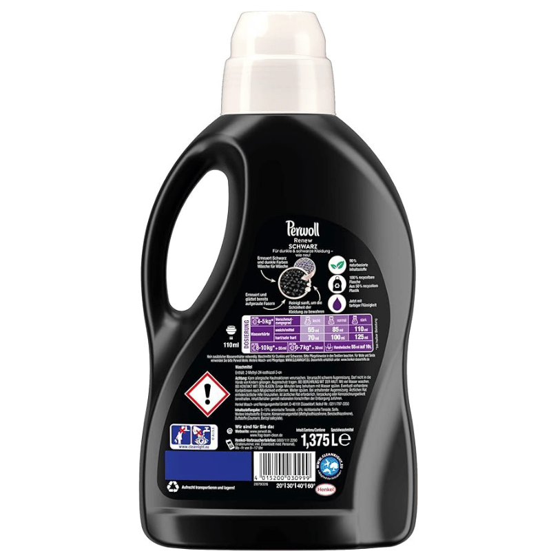- Perwoll Renew Black – The liquid detergent provides optimal care for all dark textiles – it gives gentle cleanliness and revives dark colors.