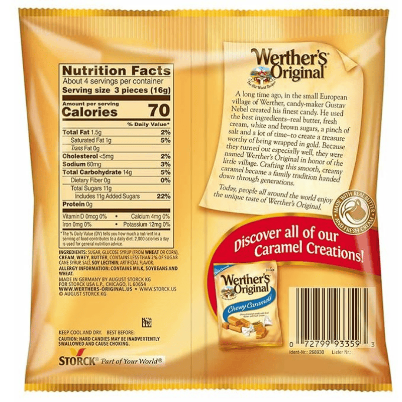 Classic Delight: Enjoy the timeless taste of Werther’s Original Caramel Hard Candy, a beloved treat loved by generations.