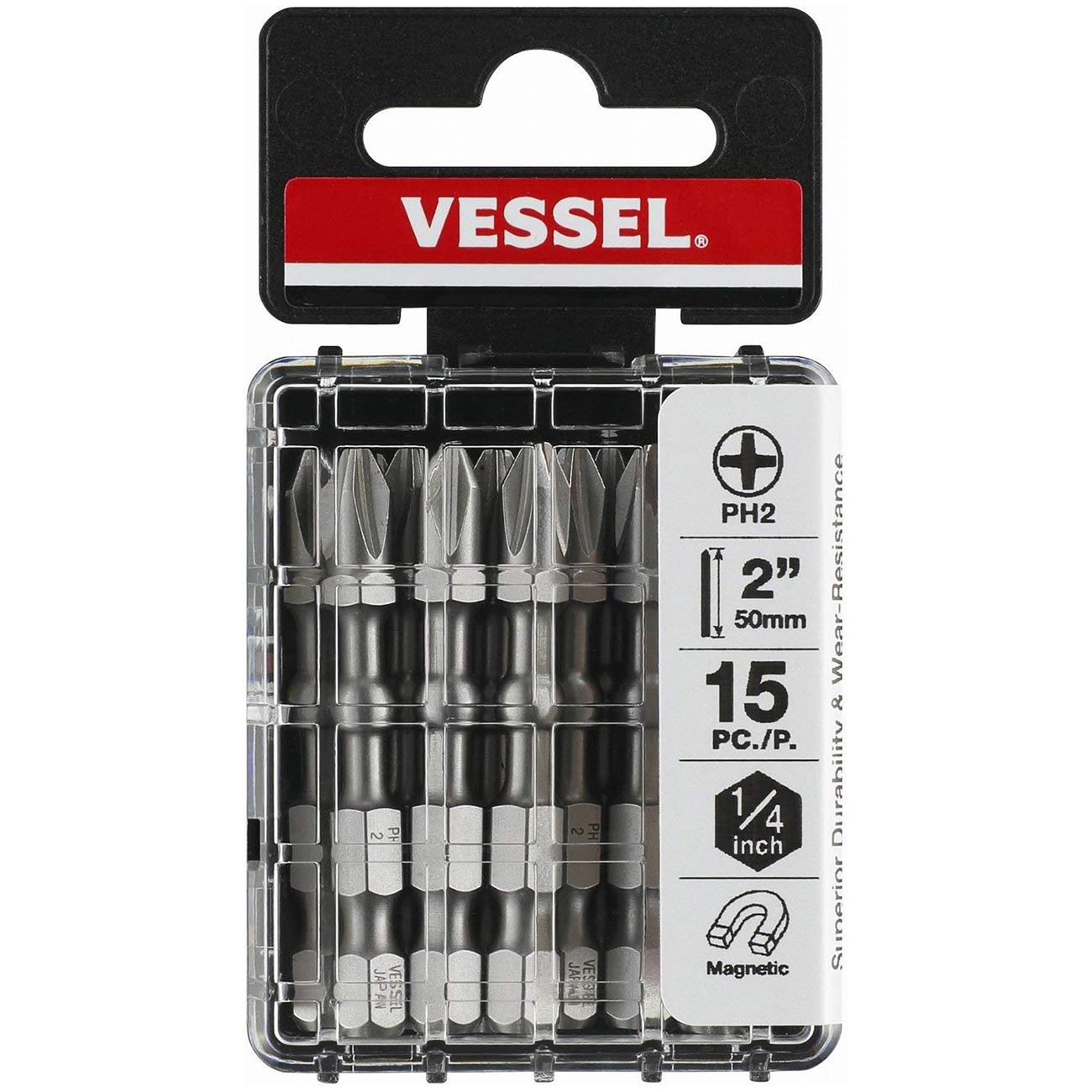 Vessel IMPACT BALL Torsion JIS +2 x 50mm in Case (15 Piece Set)